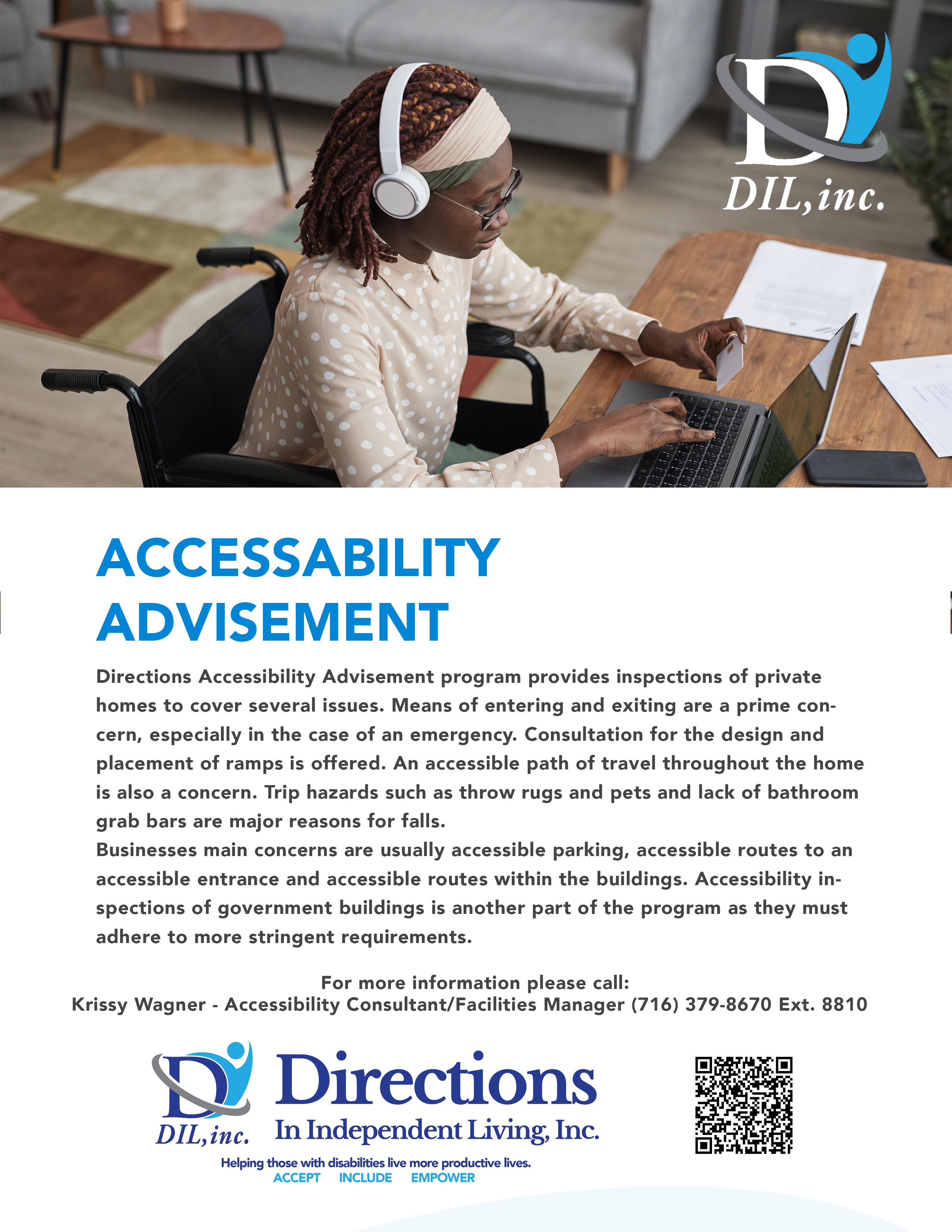 Direction’s offers various services regarding accessibility issues for businesses, public buildings, schools, churches, and homes. Some of the services include accessibility studies on-site, consultation on ramp design and placement, as well as advisement on residential interior accommodations such as bathrooms.