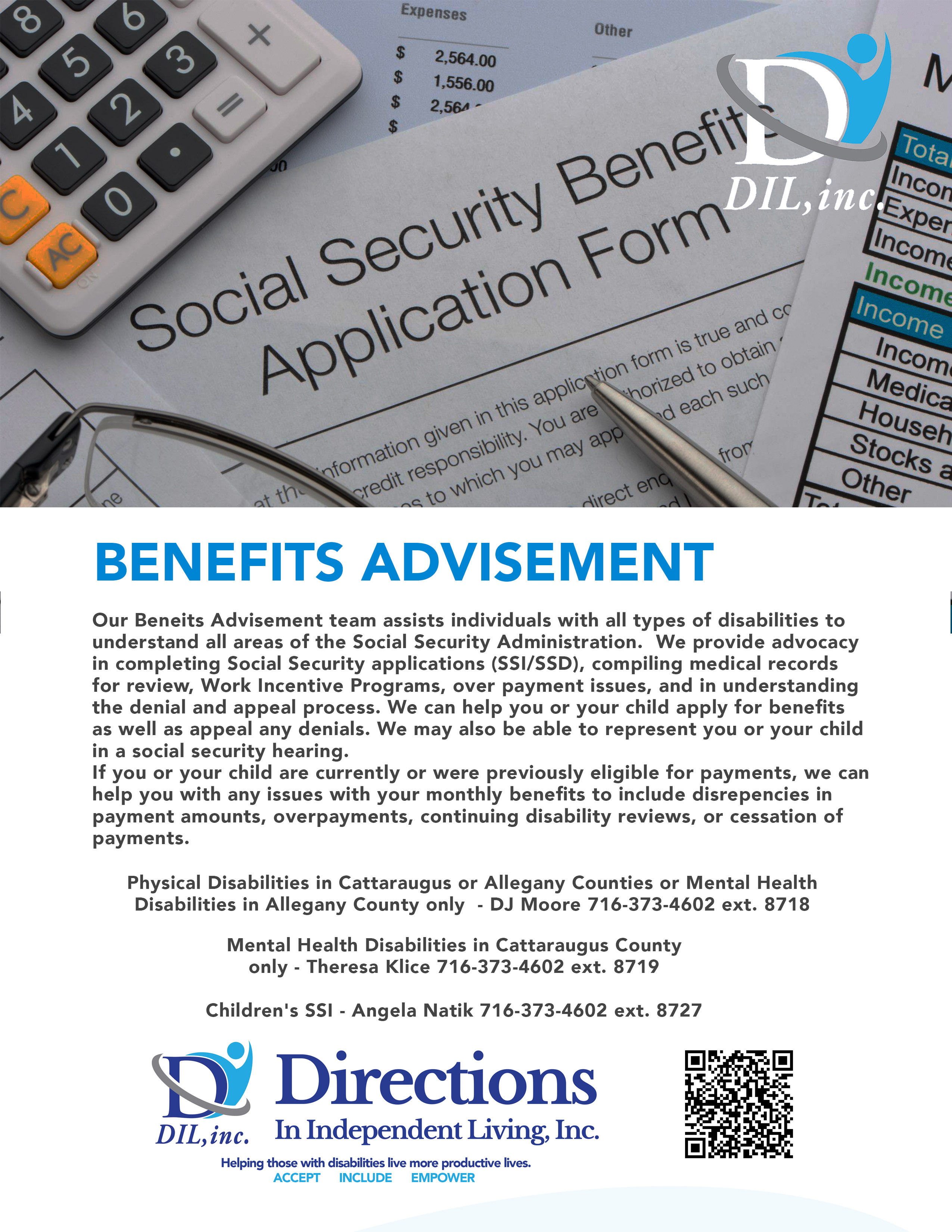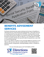 This program assists individuals with all types of disabilities to understand all areas of the Social Security Administration. Advocacy in completing Social Security applications (SSI/SSD), compiling medical records for review, Work Incentive Programs, over payment issues, and in understanding the denial and appeal process.